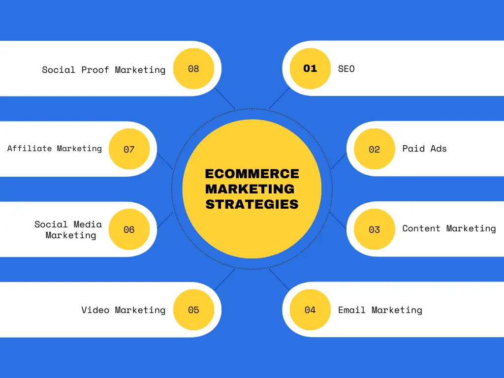 Effective marketing strategies for ecommerce include email marketing, social media engagement, paid advertising, and influencer partnerships. Focus on creating engaging content, building an email list, optimizing for search engines, and leveraging analytics to refine your approach. Remember that a mix of different marketing channels often yields the best results.